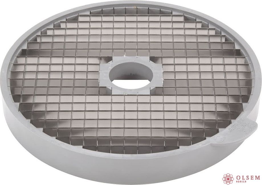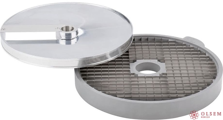 Диск для нарезки кубиком Robot Coupe 28112W используется совместно с овощерезками CL50 и CL50 Ultra, CL52, CL55, CL60 и кухонными процессорами R502, R752 для нарезки овощей и фруктов кубиками и дальнейшего использования их в качестве ингредиентов для приготовления супов, салатов, гарниров и пр. на предприятиях общественного питания и торговли. Изделие выполнено из алюминия. Новый тип обработки поверхности дисков "Mineral+" обеспечивает оптимальную защиту поверхности диска и упрощает их очистку, а также, снижает трение о диск, обеспечивая идеальный разрез и сохраняет свежесть нарезаемых продуктов.