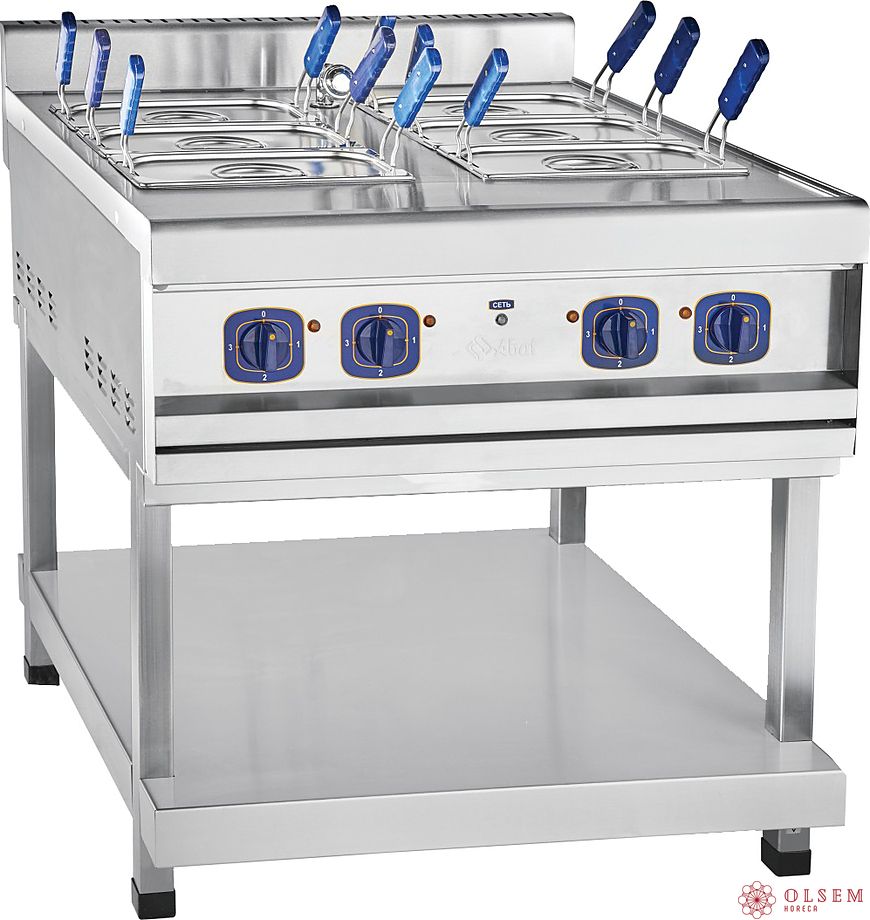Электроварка Abat ЭВК-90/2П с корзинами GN-1/3 предназначена для варки всех видов макаронных изделий, пельменей, вареников, овощей, корнеплодов и яиц на предприятиях общественного питания и торговли. Модель оснащена регулируемыми по высоте ножками.