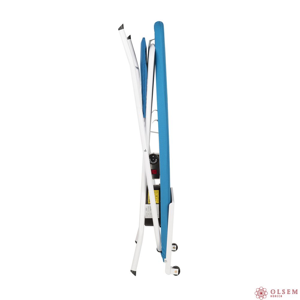 Профессиональная гладильная доска EOLO AS-06 используется в прачечных, отелях, гостевых домах и отелях для глажки белья и одежды. Модель оснащена большой подставкой для бойлера с утюгом, полкой для белья, термостатом от 30 до 90 °C, встроенной розеткой для подключения парогенератора и колесиками для перемещения в сложенном состоянии. Доска легко складывается для хранения.