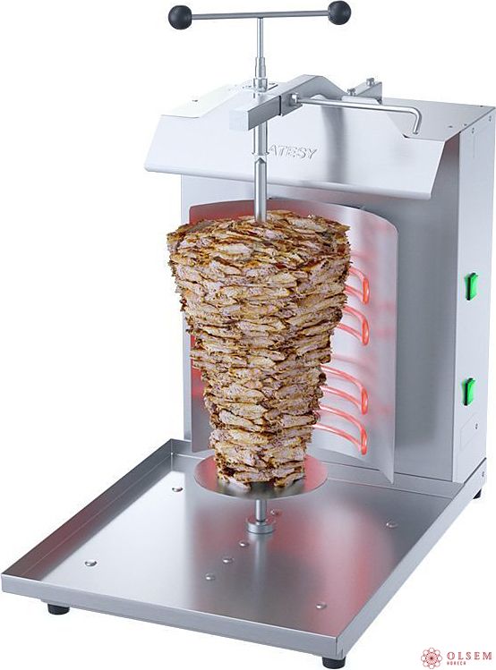 Электрический гриль ATESY Шаурма 2-Эл-05-Оц используется на предприятиях общественного питания и торговли для приготовления мясной начинки популярного блюда шаурма (шаверма). Модель оснащена 2 трубчатыми электронагревателями (ТЭНами). Корпус выполнен из оцинкованной стали, все элементы, контактирующие с пищей - из материалов, разрешенных для контакта с пищевыми продуктами.