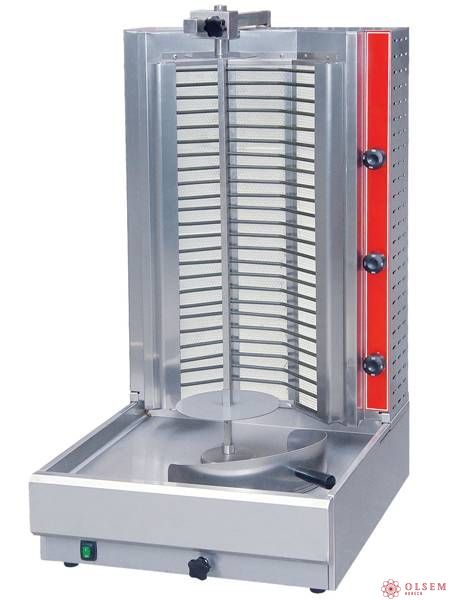 Гриль для шаурмы Hurakan HKN-GR30 используется на предприятиях общественного питания и торговли для запекания специально подготовленного свиного, говяжьего, бараньего и куриного мяса. Модель оснащена 3 зонами нагрева, 6 ТЭНами, электроприводом вращения спицы и регулируемым расстоянием между тэнами и мясом. Корпус выполнен из нержавеющей стали.