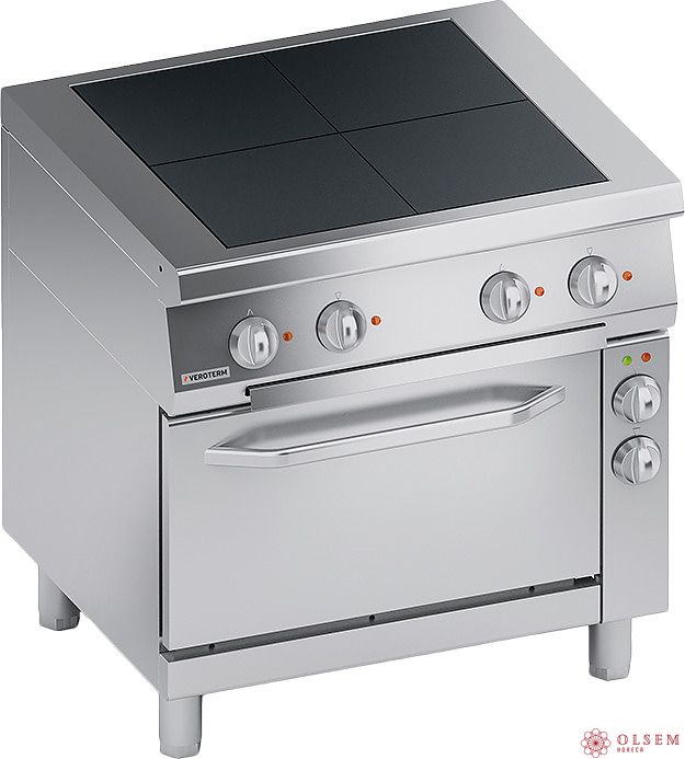 Напольная электрическая плита VEROTERM VT7RUE10FV используется на предприятиях общественного питания и торговли для приготовления широкого ассортимента блюд в наплитной посуде. Модель оснащена электромеханической панелью управления, рабочей поверхностью с 4 независимыми зонами нагрева, духовым шкафом с верхним и нижним трубчатыми электронагревателями (ТЭНами) и откидной дверью с горизонтальной рукояткой. Корпус и внутренняя облицовка шкафа выполнены из нержавеющей стали, конфорки – из чугуна.