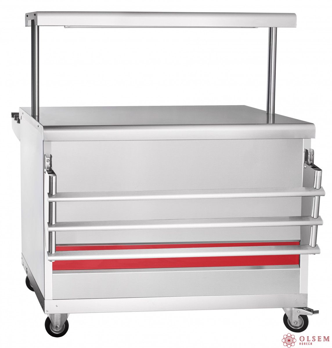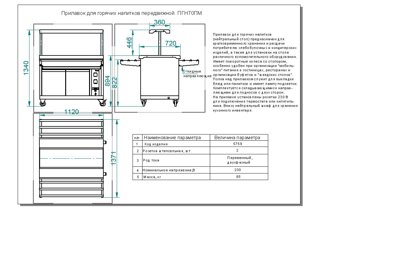 Прилавок для горячих напитков Abat ПГН-70ПМ используется в составе передвижной линии раздач для демонстрации, кратковременного хранения и последующей раздачи хлебобулочных и кондитерских изделий, термостатов с напитками в составе линий раздач на предприятиях общественного питания и торговли. Модель оснащена колесами со стопорным механизмом.