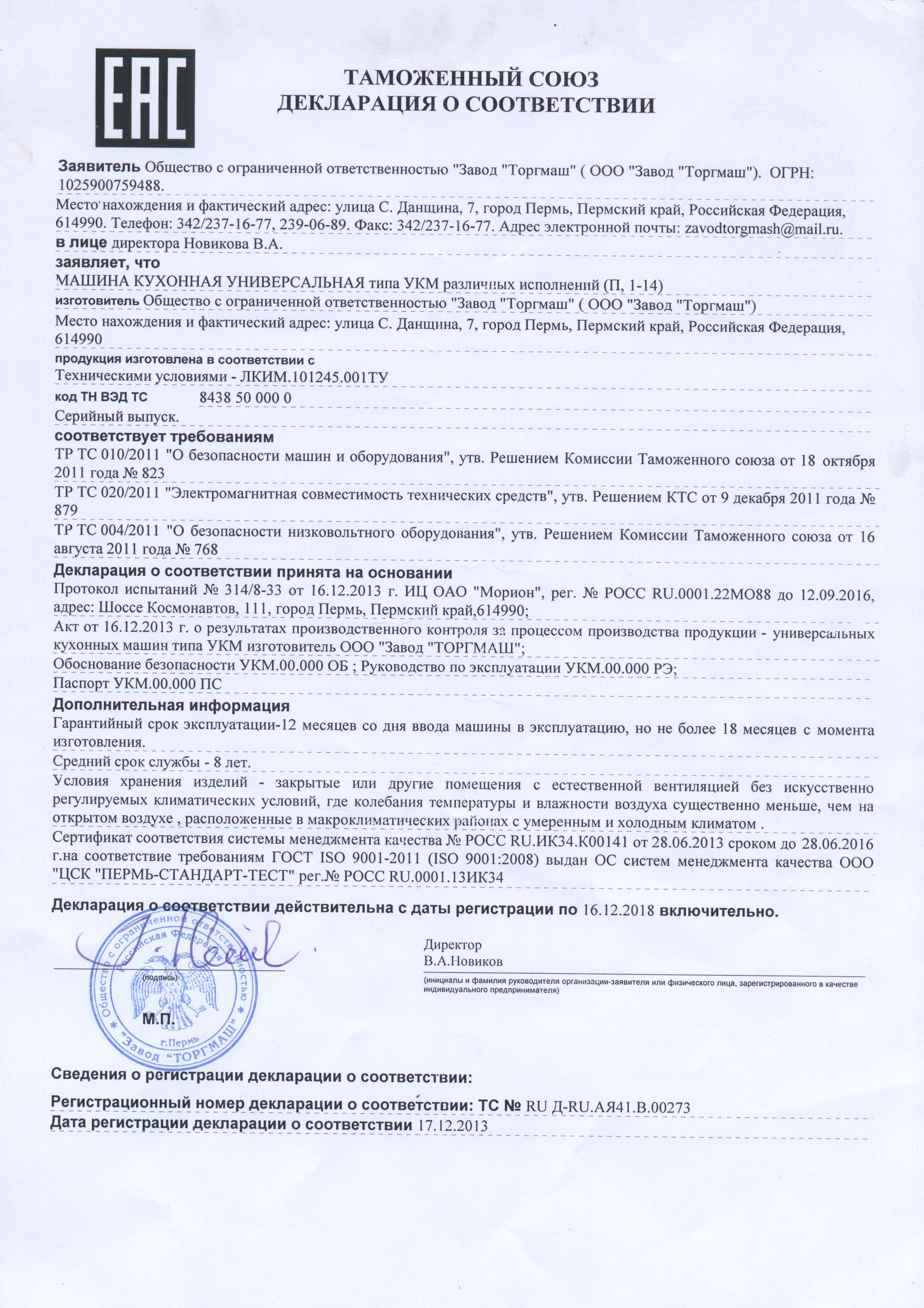 Инструкция на ТОРГМАШ УКМ-11-02.pdf5.3 Мб, 23 июня в 17:36Декларация о соответствии.jpg770 кб, 23 июня в 17:36Сертификат соответствия.pdf1.8 Мб, 23 июня в 17:35Каталог оборудования ТОРГМАШ.pdf3.2 Мб, 23 июня в 17:35
