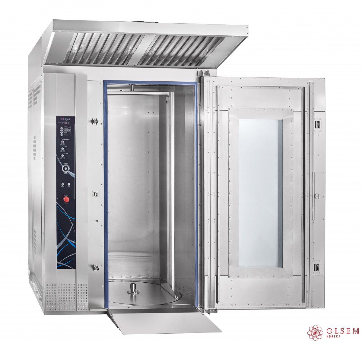 Ротационный пекарский шкаф Abat РПШ-16-2/1М предназначен для приготовления хлебобулочных и кондитерских изделий, различных блюд методом обработки паром и горячим воздухом по отдельности или комбинированно на предприятиях общественного питания и торговли. Модель оснащена панелью управления с таймером, возможностью корректирования программ во время выпечки и отображения информации о режимах работы и аварийных ситуациях.