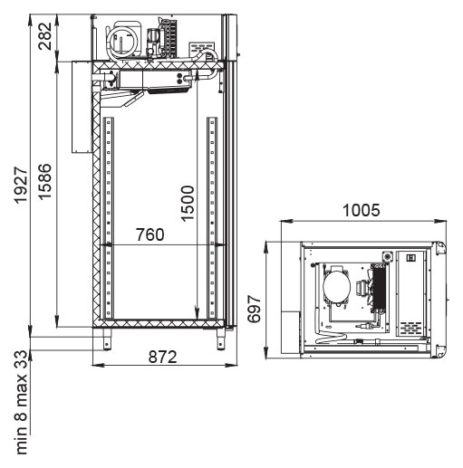 В настоящее время завод применяет регулируемые ножки, обеспечивающие высоту холодильных шкафов POLAIR – среднетемпературных – 1960 мм и низкотемпературных – 1996 мм. На эксплуатационные свойства холодильных шкафов POLAIR данная особенность не влияет. В связи с применением регулируемых по высоте ножек разных производителей общая высота холодильных шкафов может варьироваться следующим образом: для среднетемпературных шкафов объемом 500, 700, 1000 и 1400 литров высота составляет 2028 мм или 1960 мм, низкотемпературных шкафов – 2064 мм или 1996 мм.