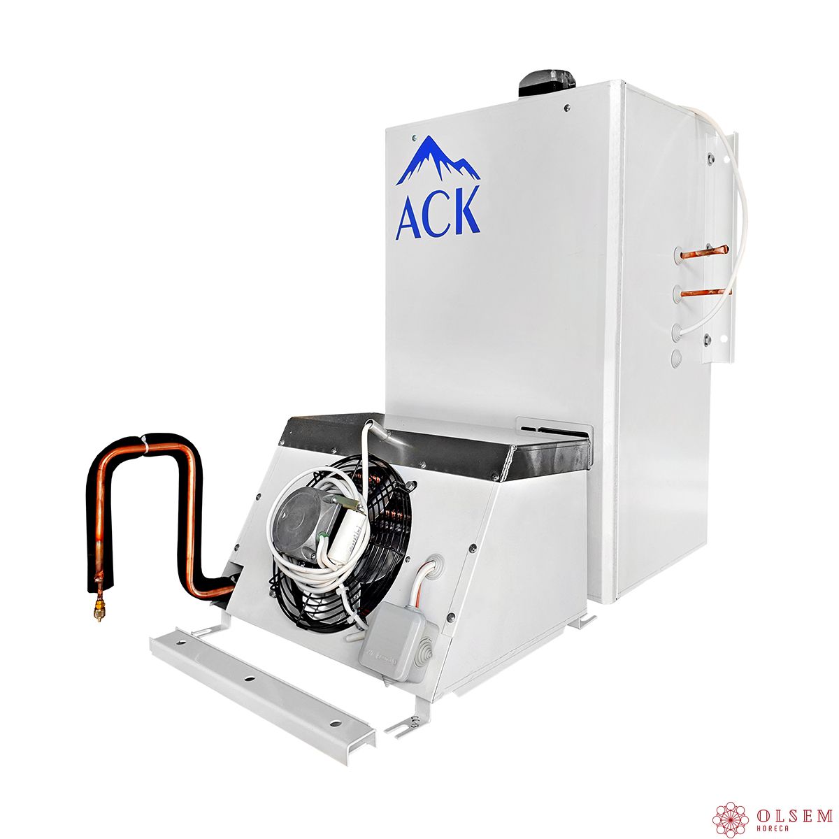 Среднетемпературная сплит-система АСК-Холод СС-12 предназначена для поддержания необходимого температурного режима в холодильных камерах на предприятиях пищевой промышленности, общественного питания и торговли. Модель оснащена компрессорно-конденсаторным блоком и воздухоохладителем, соединенными между собой теплоизолированными медными трубками, по которым циркулирует хладагент и выводится конденсат, а также кабелем питания и управления. Корпус изготовлен из оцинкованной стали белого цвета Ral 9003 толщиной 0,9-1,2 мм с полимерным покрытием в защитной пленке, трубы конденсатора и испарителя - из меди, ребра - из алюминиевого сплава.