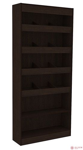 Стеллаж кондитерский СК, 900х300х2100 мм (ДУБ ВЕНГЕ) Содержит 6 вместительных полок 4 из которых ограничены бортом и разделены на секции, куда можно положить множество необходимого товара.