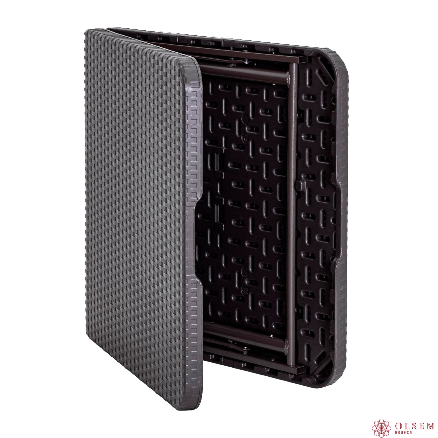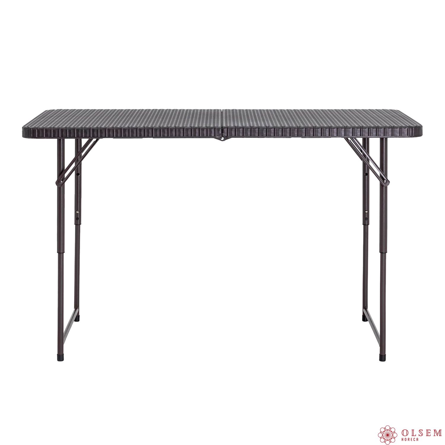 Стол для кейтеринга 1220х610 складной чемодан пластиковый коричневый – это удобное и практичное решение для организации мероприятий, кейтеринга и других задач, где важны мобильность и надежность. Модель стола-книжки имеет складную конструкцию, что делает его компактным для транспортировки и хранения. Столешница выполнена из прочного и безопасного материала HDPE (полиэтилен высокой плотности), а каркас изготовлен из стальной трубы, обеспечивая устойчивость и долговечность.