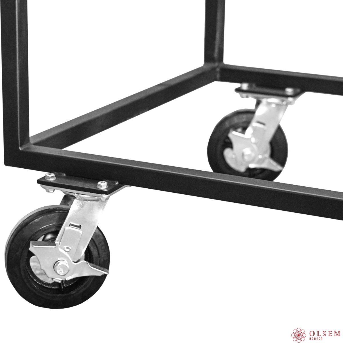 Удобство транспортировки: Колеса со стопорным механизмом позволяют легко перемещать и фиксировать тележку.