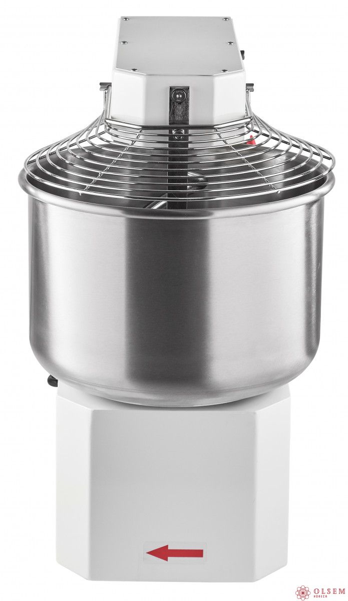 Корпус выполнен из высококачественной конструкционной стали с полимерным покрытием, металлические детали машины, контактирующие с продуктом во время замеса (спираль, дежа, нож) - из нержавеющей стали AISI 304.