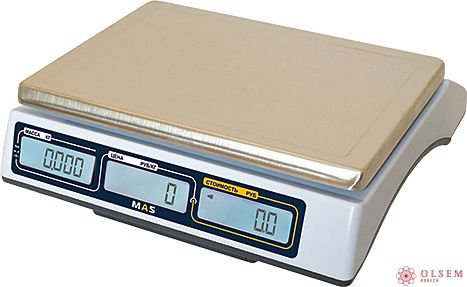Торговые весы MAS MR1-15 используются на предприятиях общественного питания и торговли для точного взвешивания различных товаров и продуктов питания. Модель оснащена мембранной влагостойкой клавиатурой, ярким ЖК-дисплеем с размером символов 18 мм и дисплеем для покупателя. Платформа выполнена из нержавеющей стали.