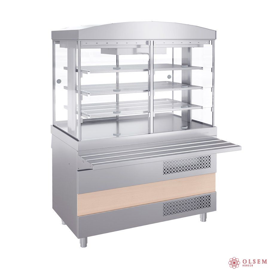 Холодильная витрина ATESY Ривьера ХВ-1200-02 используется на предприятиях общественного питания и торговли для кратковременного хранения, демонстрации и раздачи холодных напитков, салатов, кисломолочных продуктов и других блюд, требующих хранения в охлажденном состоянии. Модель оснащена 3 вместительными съемными перфорированными полками. Столешница выполнена из нержавеющей стали AISI 430 и усилена листом ламинированной ДСП толщиной 16 мм, боковые стенки витрины и двери со стороны обслуживающего персонала - из стеклопакетов, дверцы со стороны покупателя - из оргстекла, полки и ;направляющая для подносов - из нержавеющей стали, ножки - из нержавеющей стали с пластиковой опорной частью.