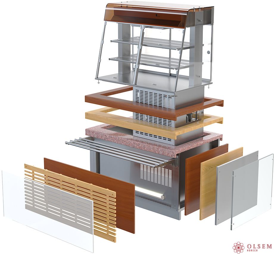 Холодильная витрина ATESY Регата ХВ-1500-1670-02 используется на предприятиях общественного питания и торговли для кратковременного хранения, демонстрации и раздачи холодных напитков, салатов, кисломолочных продуктов и других блюд, требующих хранения в охлажденном состоянии. Модель оснащена 2 вместительными съемными перфорированными полками. Столешница выполнена из нержавеющей стали, боковые стенки, крыша витрины и самозакрывающиеся дверцы со стороны покупателя - из стекла толщиной 6 мм, двери-«купе» со стороны обслуживающего персонала - из стеклопакетов.